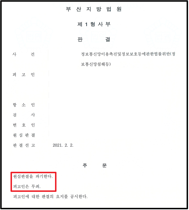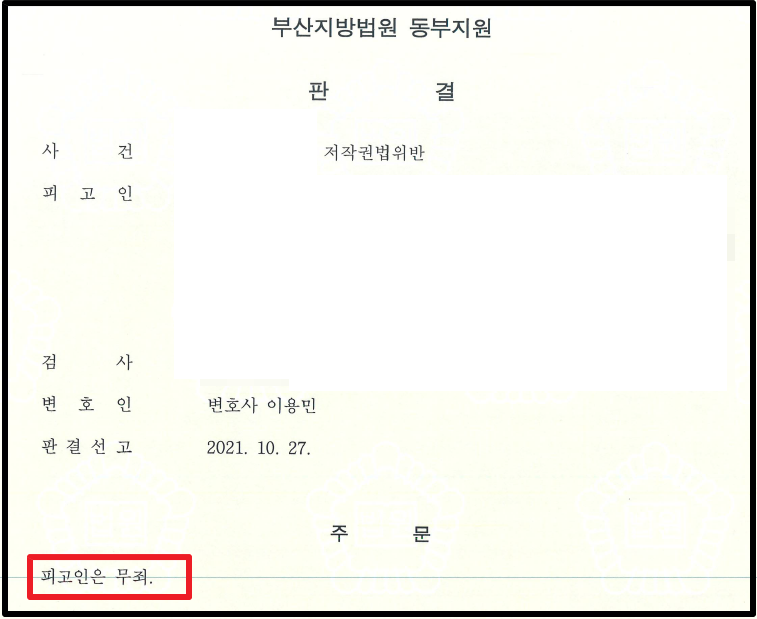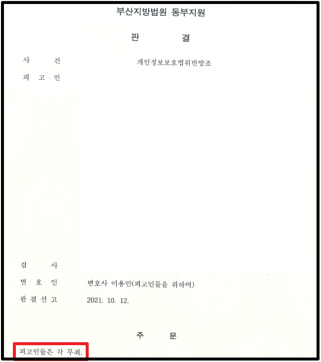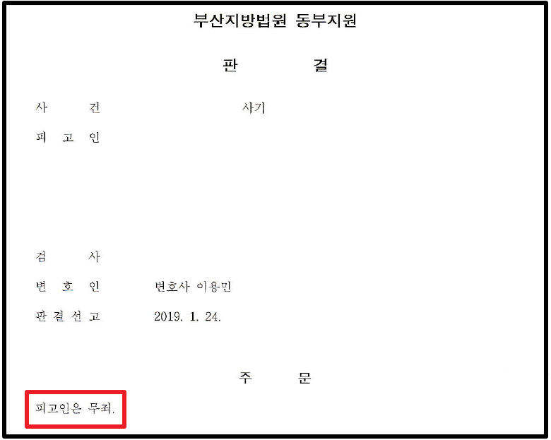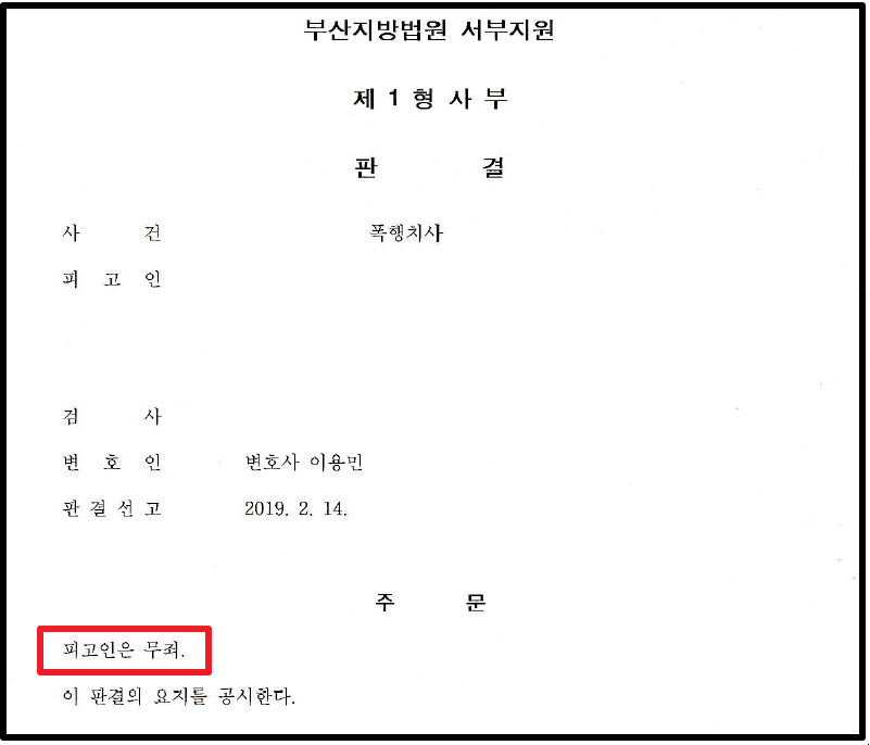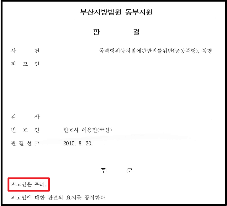 법무법인 시우 부산사무소의 이용민 파트너 변호사는 형사전문변호사로서 수많은 사건을 진행하면서 다수의 무죄판결, 무혐의 등 성공적인 결과를 얻고 있습니다. 아래의 무죄 판결 결과들과 홈페이지의 고객후기를 참고해 주세요. 사건 상담 및 의뢰 연락은 언제든지 환영입니다.